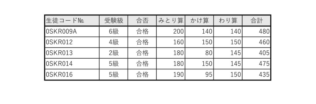 堺向陵教室の検定結果です。