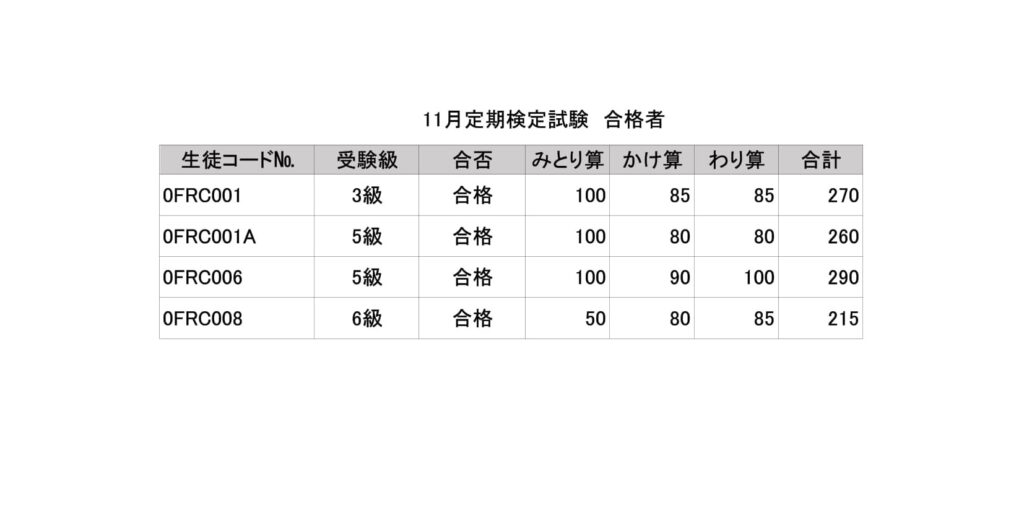 【旭区】2025年11月珠算検定試験結果