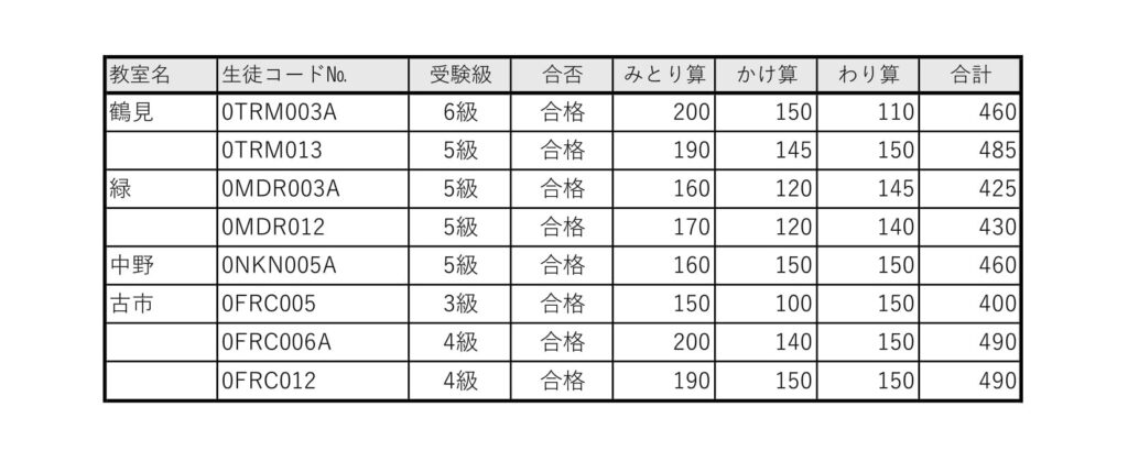 鶴見区(鶴見教室、緑教室)、都島区(中野教室、京橋教室)、旭区(古市教室)の合格者です