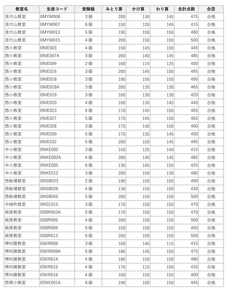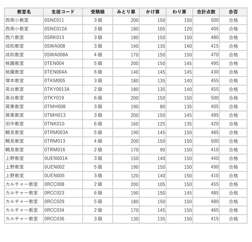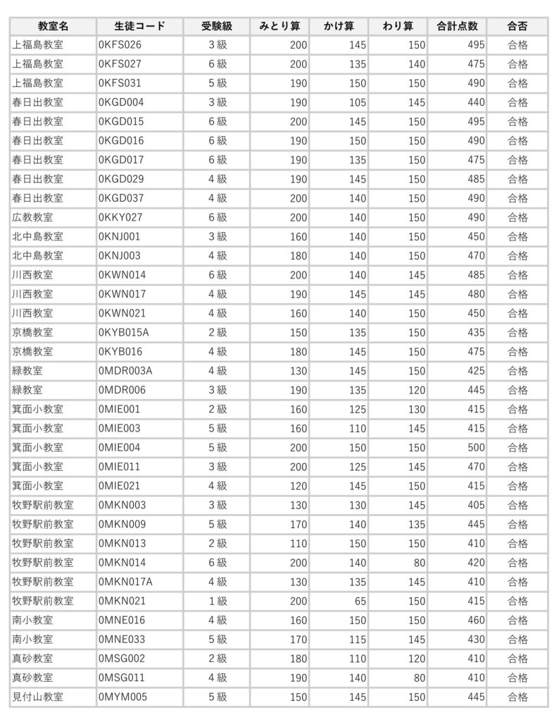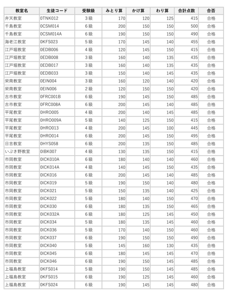 2026年3月実施の暗算検定試験合格者は次の通りです。