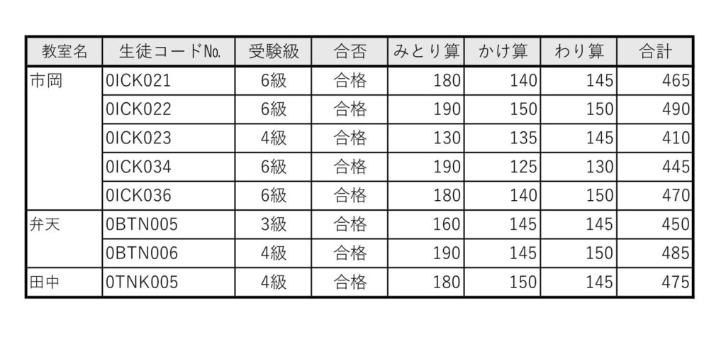 市岡教室、弁天教室、築港教室、田中教室の合格者です