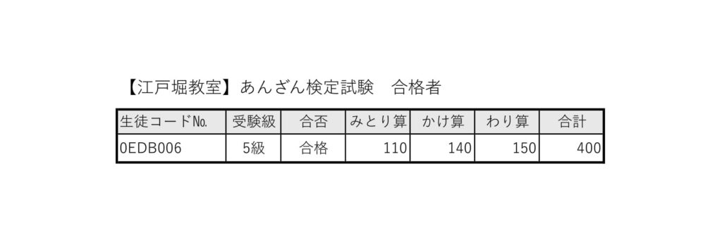 【江戸堀教室】2025年9月 あんざん検定試験結果